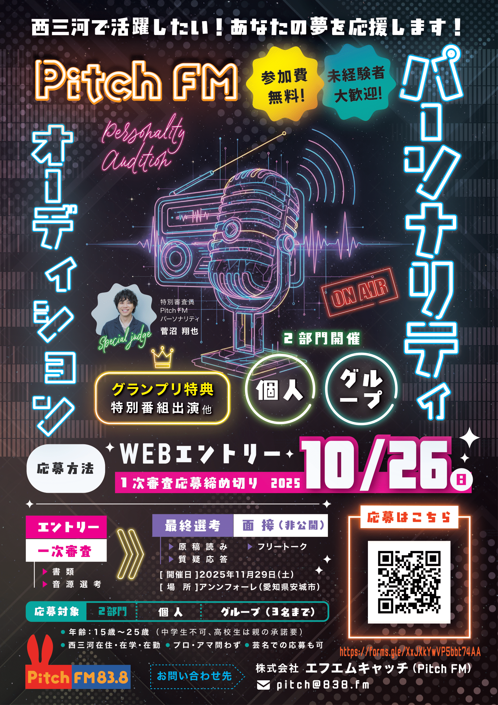 地元のラジオ局Pitch FMが、特別番組のメインパーソナリティを大募集!!Pitch FMが若者向けパーソナリティオーディションを初開催します。